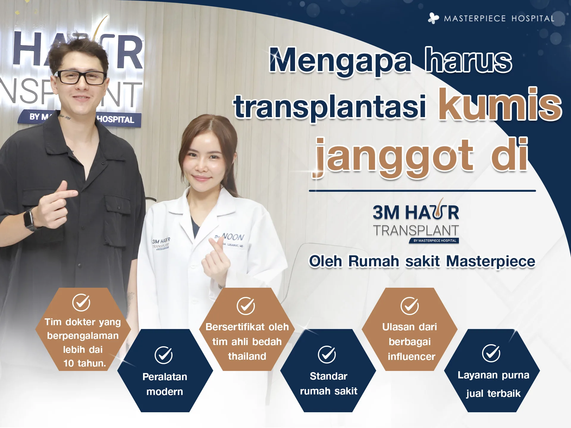 - 3M Hair Transplant by Masterpiece Hospital menyediakan layanan transplantasi rambut, kumis, janggut, jambang, dan alis dengan tim dokter spesialis berpengalaman lebih dari 10 tahun serta berbagai penghargaan sebagai jaminan kualitas