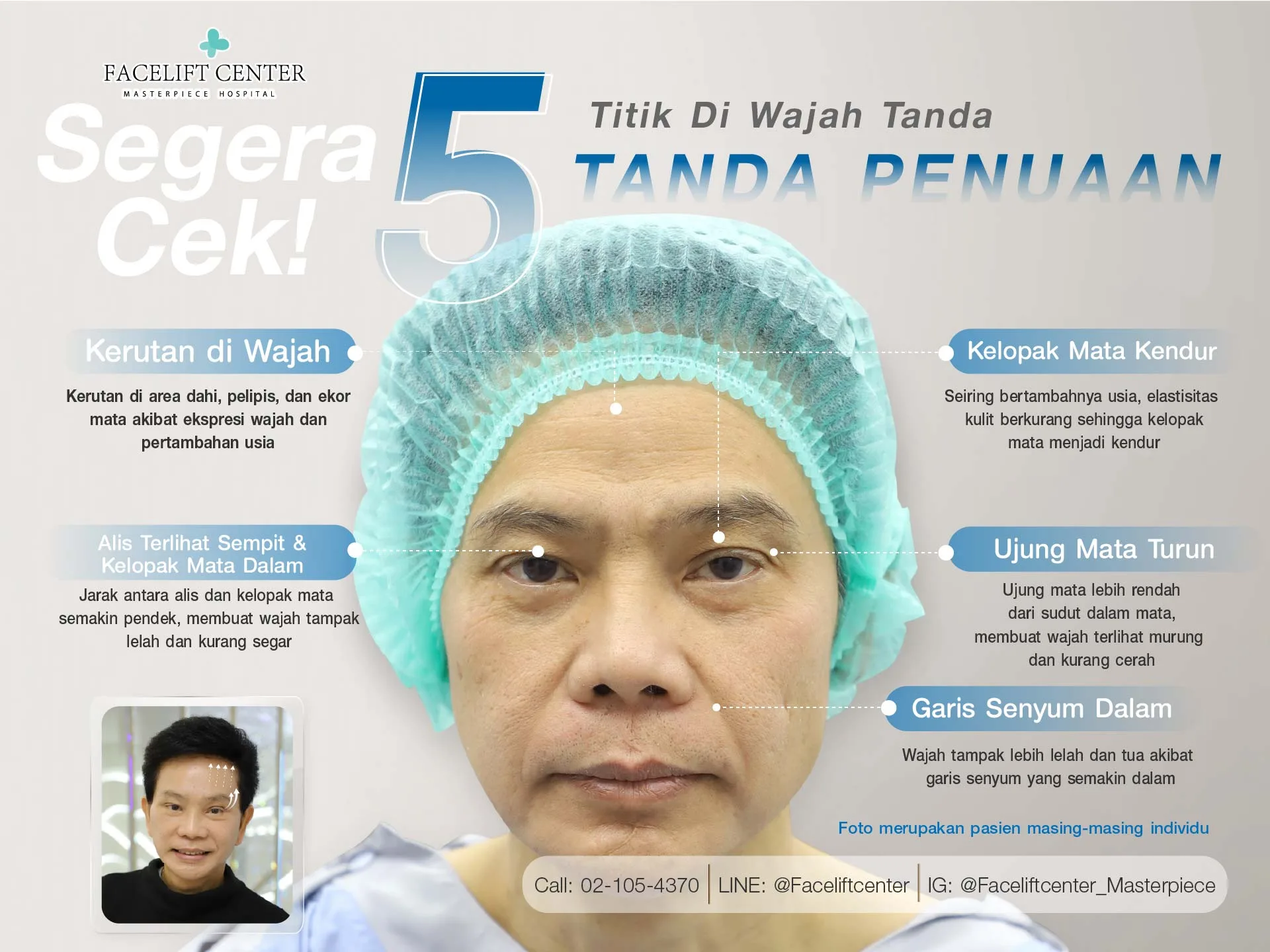- Hanya cocok untuk usia paruh baya: Tidak benar! Cocok untuk semua usia yang memiliki masalah alis turun atau kelopak mata turun, tidak terbatas hanya pada usia paruh baya.