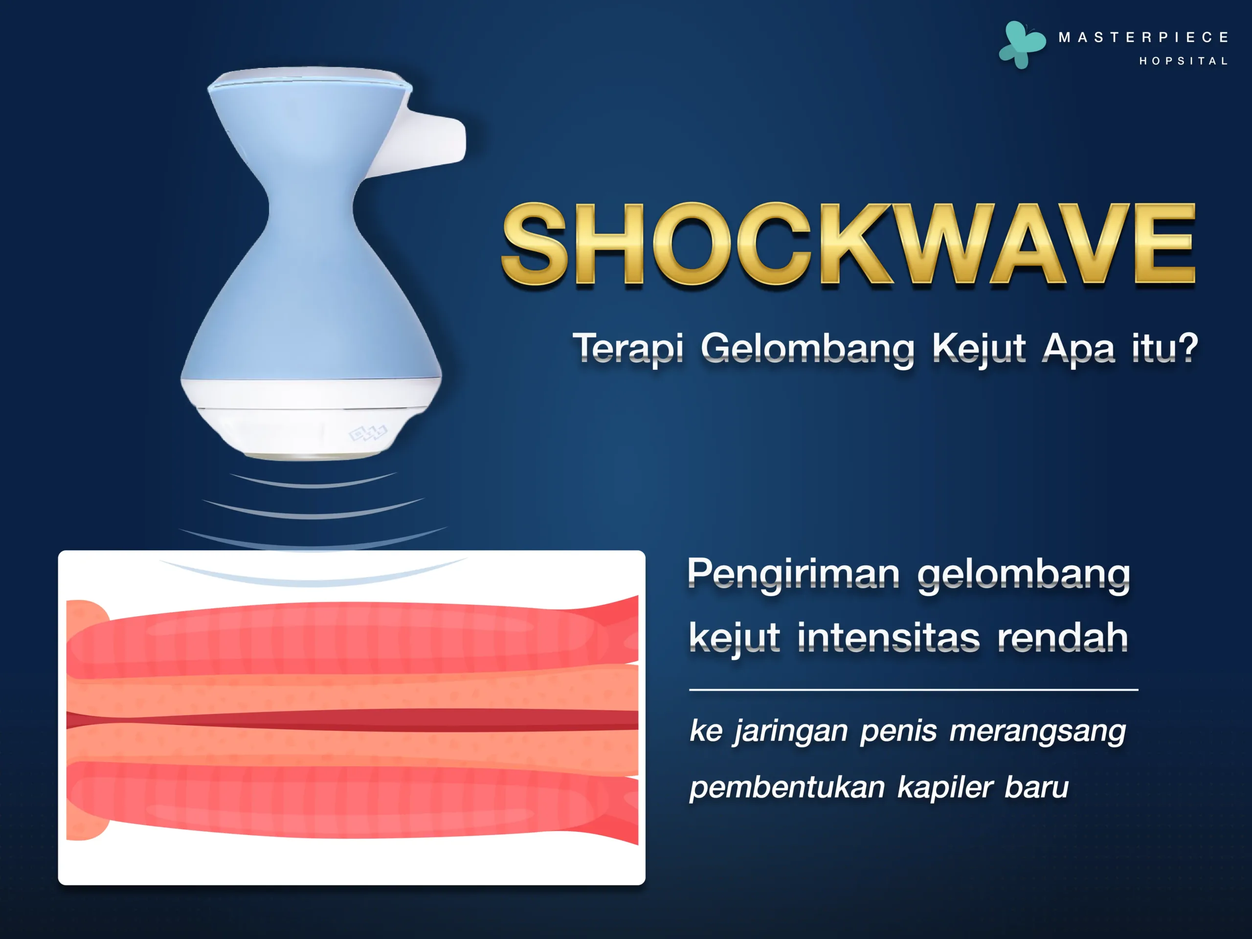 Dengan penjelasan tersebut, pasien diharapkan dapat memahami bahwa shockwave pada penis merupakan salah satu pilihan perawatan yang dapat membantu memulihkan fungsi organ reproduksi pria tanpa tindakan pembedahan dan tanpa penggunaan obat-obatan. Di Rumah Sakit Masterpiece tersedia layanan bedah kesehatan pria (Men’s Health) yang menyediakan perawatan shockwave.